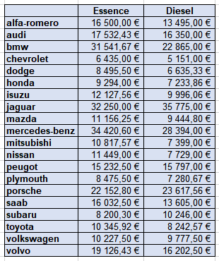 Créer un tableau récapitulatif pour obtenir le prix moyen de chaque marque en fonction du carburant.