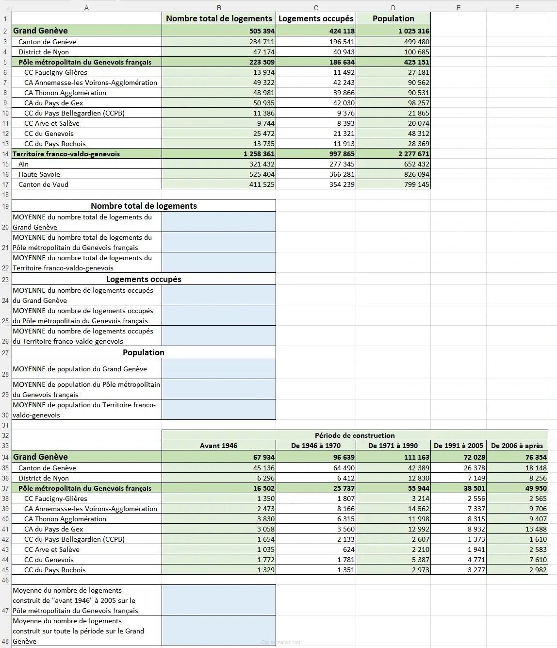 De B20 à B22 "###### logements", de B24 à B26 "######" logements occupés, de B28 à B30 "###### personnes" et de "B47 à B 48 ###### logements"