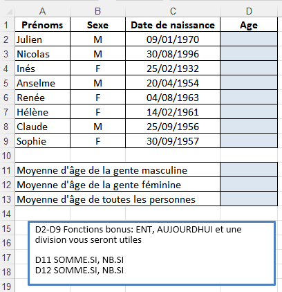 D2-D9 Fonctions bonus : ENT, AUJOURDHUI et une division vous seront utiles