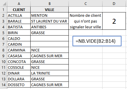 Dans l'exemple la colonne B comporte 2 cellules vides
