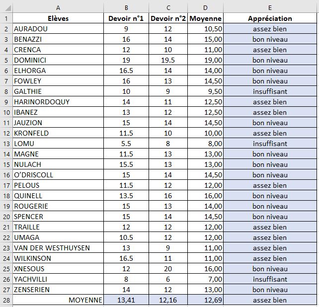 Si la moyenne de l’élève est comprise entre 10 et la moyenne de la classe, l’appréciation est « Assez bien ».