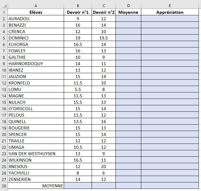 Vous utiliserez la mise en forme conditionnelle (menu format) pour mettre automatiquement en italique toutes les notes inférieures à 10.