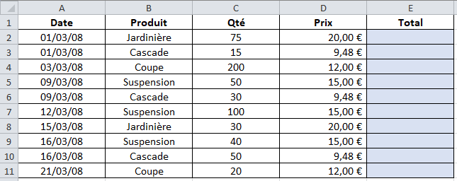 Dans la colonne E, vous calculez le produit de la vente de chaque jour.