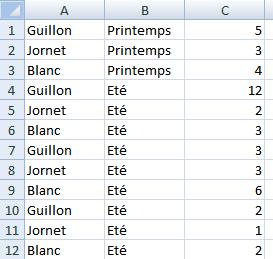 =SOMMEPROD((A1:A12="Guillon")*(B1:B12="Eté"))