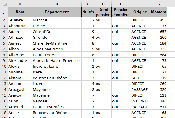 À partir de la liste de données jointe, construisez les tableaux suivants :