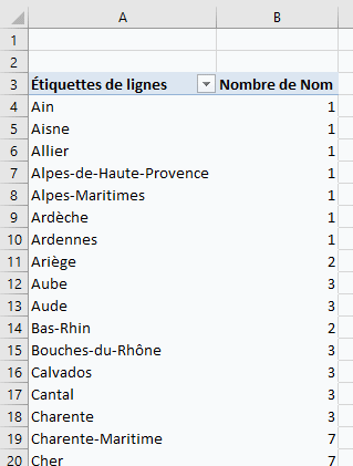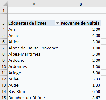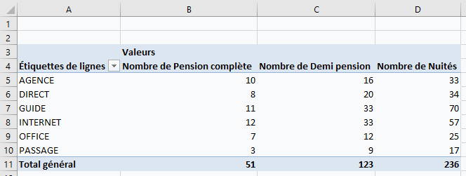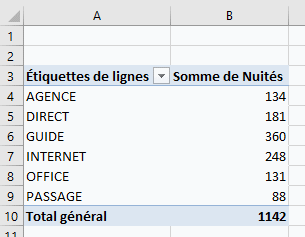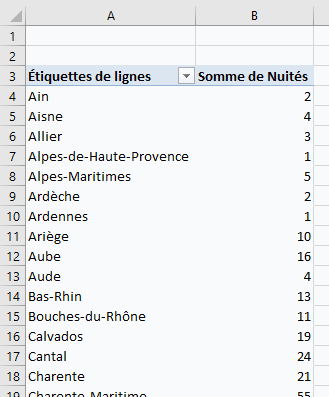 - Vous insérez une "chronologie" pour évaluer le nombre de dates dernières nuitées en fonction de l'année