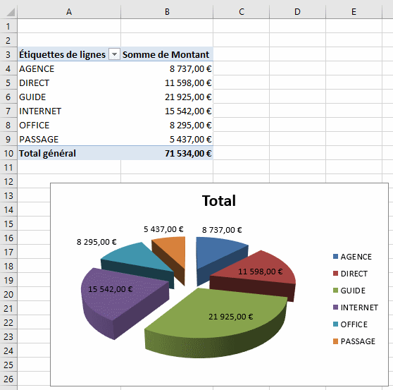 - Chiffre d'affaires par origine et faire une représentation graphique