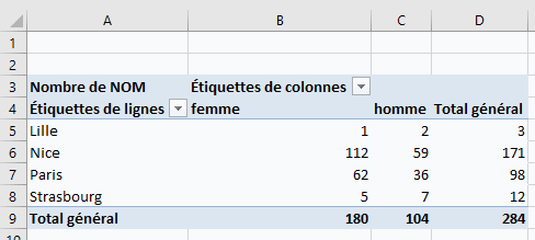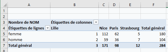 À partir de cette base de données, avec l'outil "rapport de tableau croisé dynamique" faire les exercices suivants :