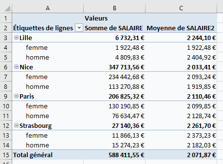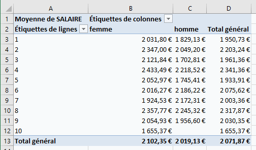 - Calculer la moyenne des rémunérations par tranches d'âges avec distinction homme/femme