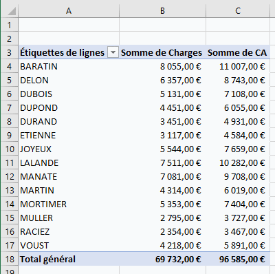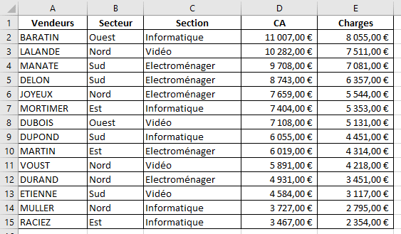 Le résultat des ventes de plusieurs vendeurs sont présentés sur le fichier à télécharger ci-contre.