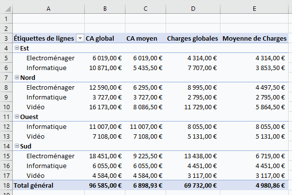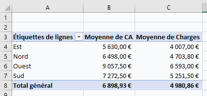 Vous devez présenter les résultats de votre tableau croisé dynamique en 4 feuilles
