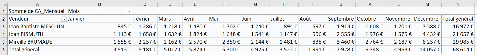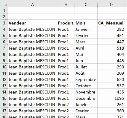 Comparaison des chiffres d'affaires par mois (CA_Mensuel) pour chaque vendeur.