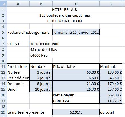 Après avoir ouvert un classeur Excel reproduire le tableau ci-dessous ou télécharger le fichier de travail ci-contre