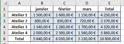 Après avoir ouvert un classeur Excel, reproduire le tableau ci-dessous et mettre les données chiffrées au format monétaire.