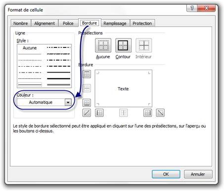Vous pouvez jeter un coup d'œil dans « Remplissage » : (onglet suivant) ça ajoute une couleur de fond à la cellule.
