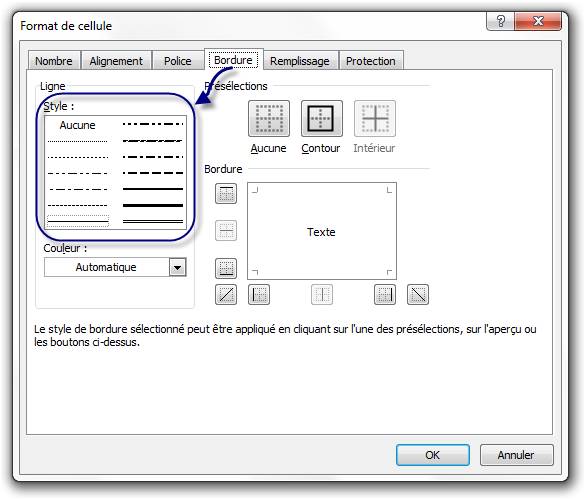 Choisissez maintenant le style de la bordure (épaisseur, etc.) dans le menu entouré en bleue sur cette nouvelle image :