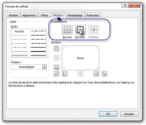 Sélectionnez une plage de cellules puis accédez au format de cellule. Je zappe l'onglet « Police » mais je m'attarde sur les bordures. Cliquez sur l'onglet « Bordure » :