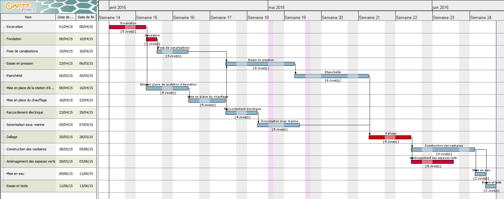 antériorités des tâches est le suivant Les travaux débutent le 1er avril :