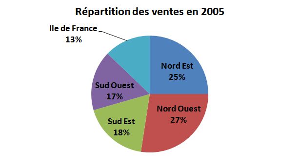 Graphique en pourcentage sur la répartition des ventes en 2005
