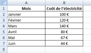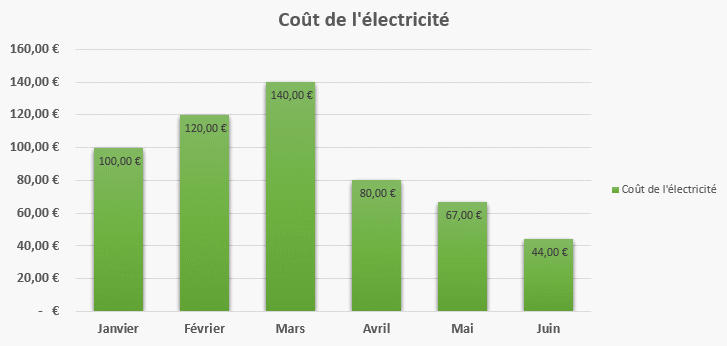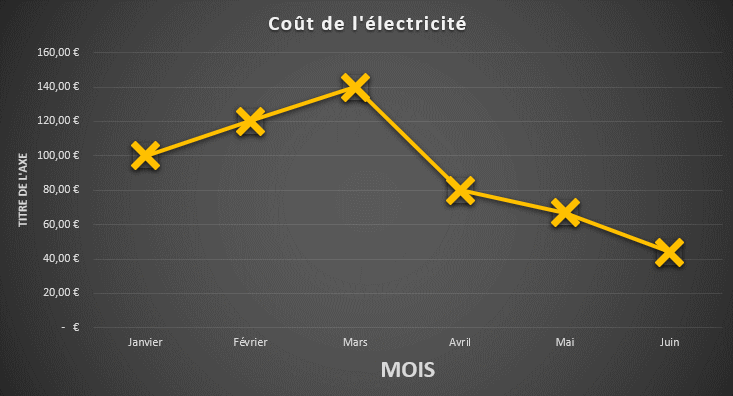 Le titre du graphique sera Évolution du coût de l'électricité par mois.