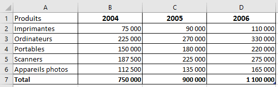 Insérez un graphique de type histogramme avec les données ci-dessous.