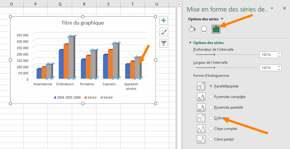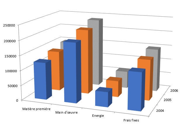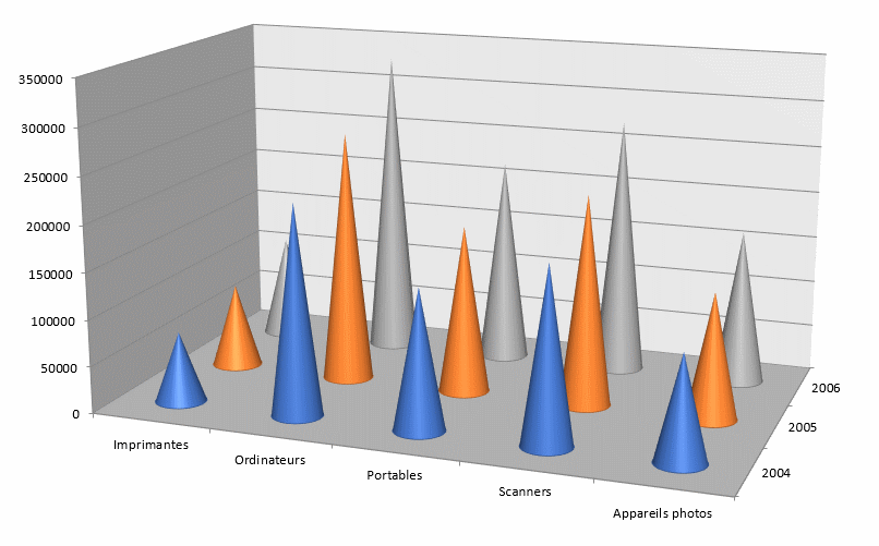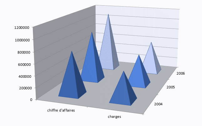 Série 2 : Pour jouer avec les possibilités de mise en forme 3D. Respectez l'affichage des valeurs de chaque série (abscisses et ordonnées). Variez les séries de couleurs.