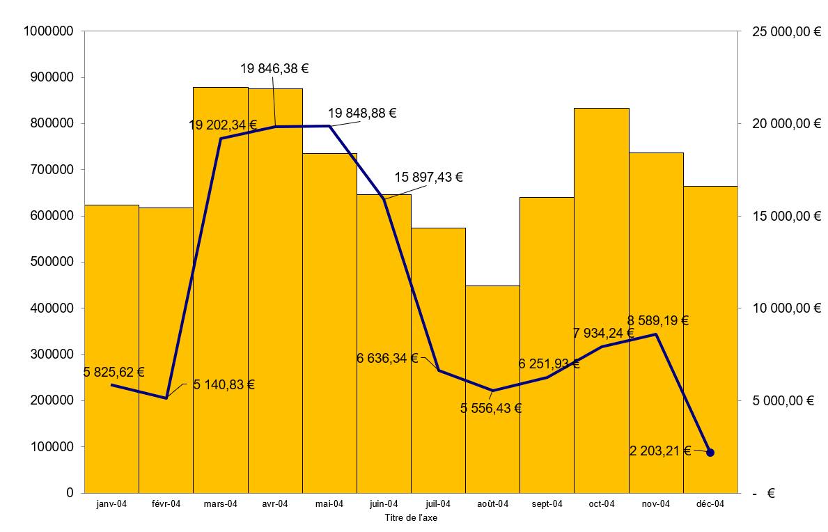 Graphique à deux axes L'objectif est de représenter ces deux séries de données sur le même graphique, mais sur deux axes différents, afin de rendre lisible le graphique. On choisira un graphique en courbe, ou combinant un histogramme et une courbe. Vous afficherez les étiquettes de données en décaler pour les ventes.
