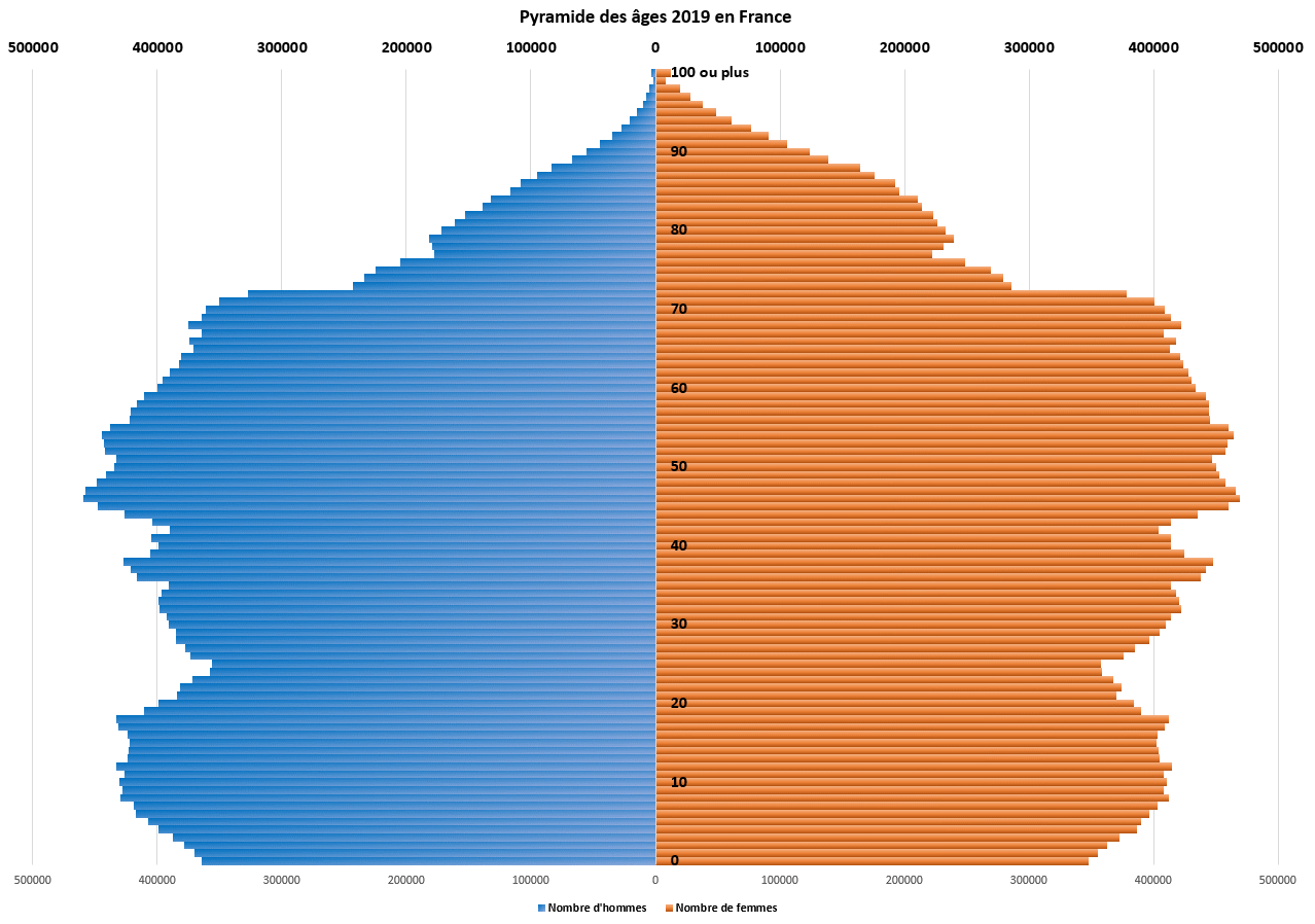 Pyramide des âges : L'objectif est de représenter la pyramide des âges de la France en 2019. La procédure est détaillée ci-dessous soit via quelques indices si vous êtes à l'aise avec les graphiques, soit via une vidéo si vous l'êtes moins.