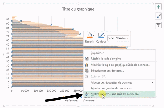 Clic droit sur les données et mettre en forme une série de données