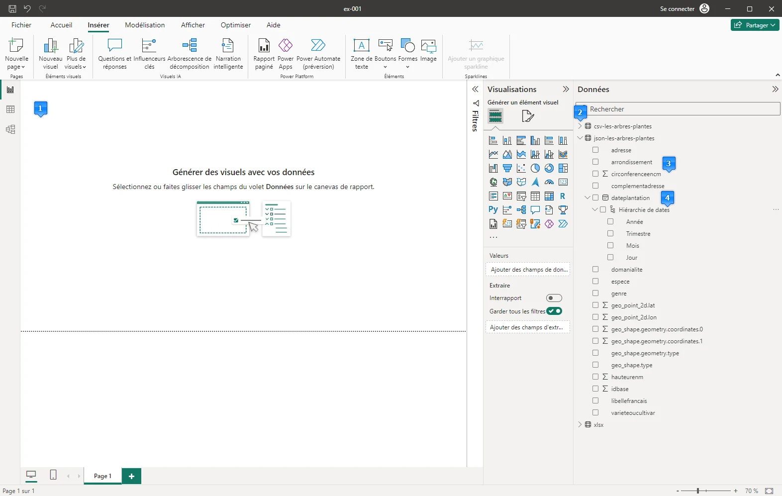 Repère 4 : Power BI à identifier celle colonne comme comportant des dates. Veuillez noter que les dates sont "découpées" en année, mois et jours