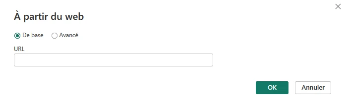 Obtenir de données-->Plus->Autre-->Web-->se connecter et vous obtenez la fenêtre ci-dessous, vous collez l'URL et acceptez la connexion si Power BI vous demande l'autorisation.