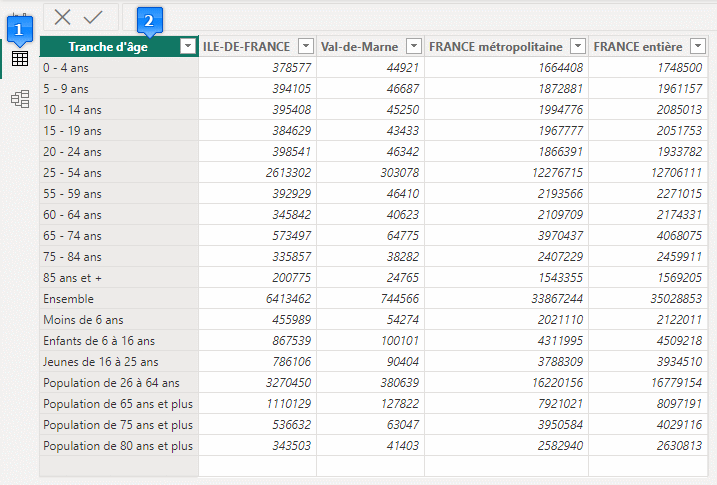 Sur le repère 1, vous constatez que la colonne des tranches d'âge ne comporte pas d'en-tête, un clic sur les… vous permettra de renommer le champ en "Tranche d'âge".