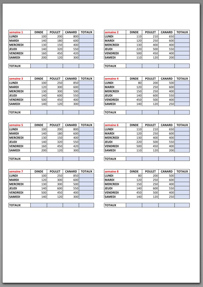 Vous préparez l'impression avec des marges étroites et une échelle réglée à 70% pour faire entrer les 8 tableaux sur une feuille.