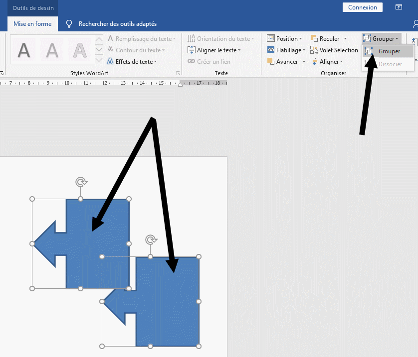 Sélection à l'aide de la touche "ctrl+clic" et menu "grouper"