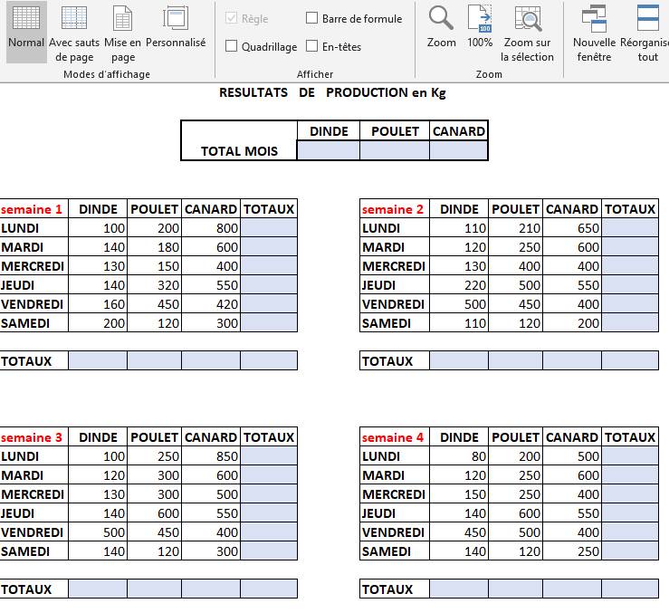 Dans le groupe "Afficher" vous retirez le Quadrillage, la Barre de Formules et les En-têtes