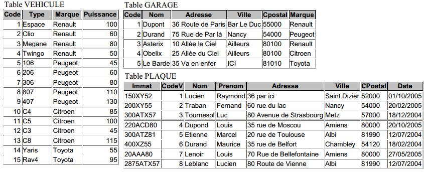 WHERE VEHICULE.Marque=GARAGE.Marque ;