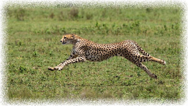 Dans un premier temps, vous glissez la photo du guépard sur votre bureau puis dans votre logiciel.Vous créez un fond transparentVous utilisez le menu calque-->effet de bord : "Dispersion", "Contour progressif", "Déchiré".