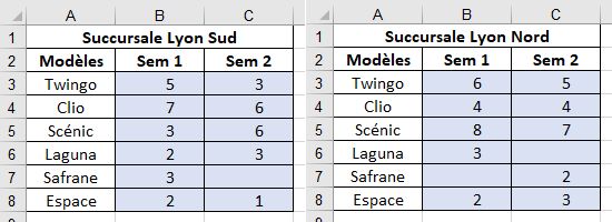 Depuis cette feuille, vous rapatriez dynamiquement les valeurs du tableau Lyon Sud de la feuille "Vue d'ensemble".