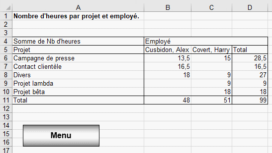 L'objectif de l'exercice est de mettre en place un système de liens hypertextes entre les feuilles d'un même classeur.
