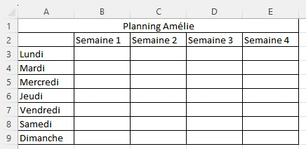 Le planning ci-dessous est à réaliser chaque mois pour tous les employés.