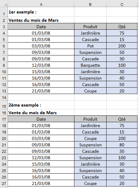 Dans cette zone, tous les produits en double dans la liste doivent sortir en Jaune avec le fond de cellule bleu.