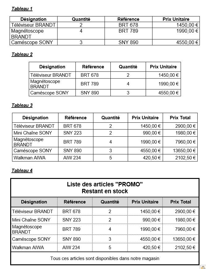 Vous dupliquez le tableau 3 fois et vous le modifié en conséquence pour les rubriques 2, 3 et 4.