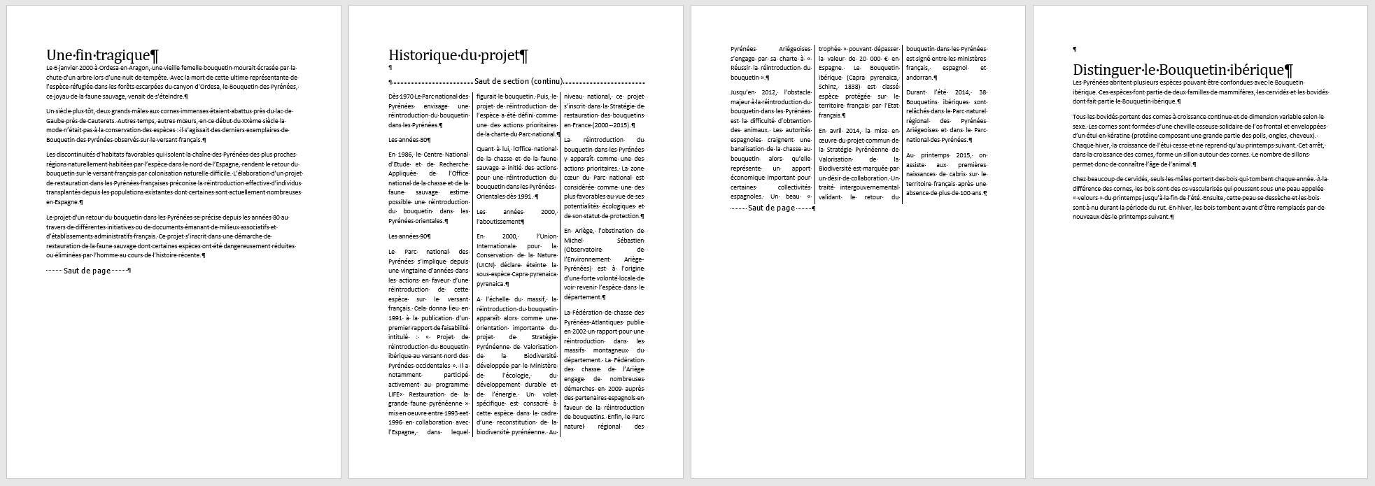 Vous insérez une segmentation qui vous permettra de mettre le second paragraphe et uniquement celui-ci sur 3 colonnes