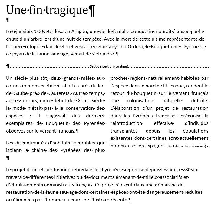 Vous insérez une segmentation afin de mettre les deux paragraphes centraux sur deux colonnes.