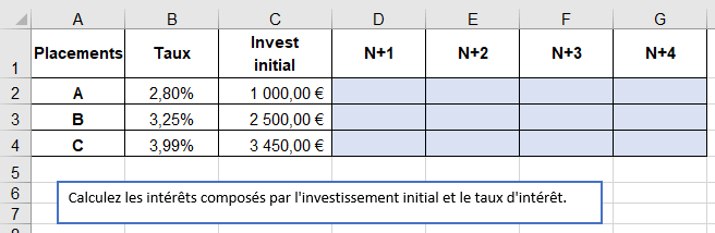 Calculez les intérêts composés par l'investissement initial et le taux d'intérêt.