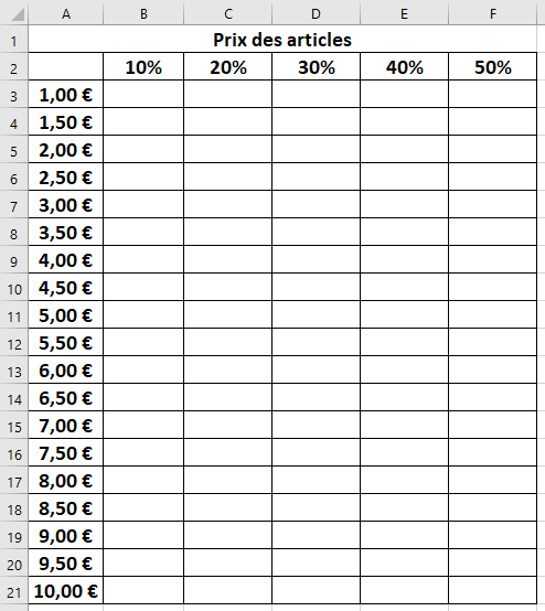 5 cellules à saisir maximum, à faire en moins d'une minute