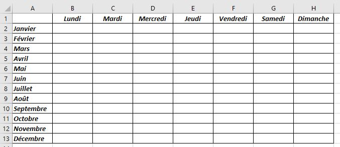 Reproduisez ce tableau en saisissant B1 et A2 uniquement