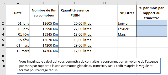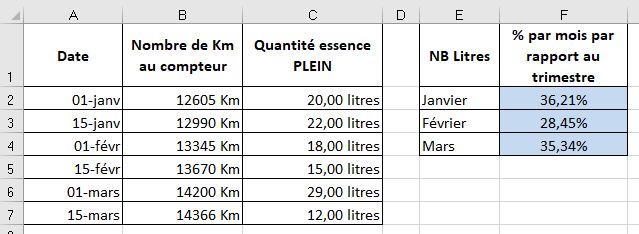 Vous imaginez le calcul qui vous permettra de connaitre l'évolution de la consommation par mois par rapport à la consommation globale du trimestre.