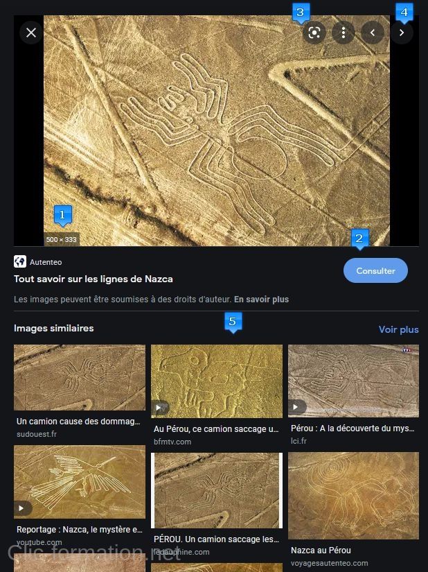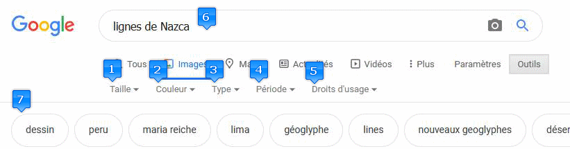 La recherche d’images avancée permet d’affiner considérablement les résultats. Vous pouvez choisir :
