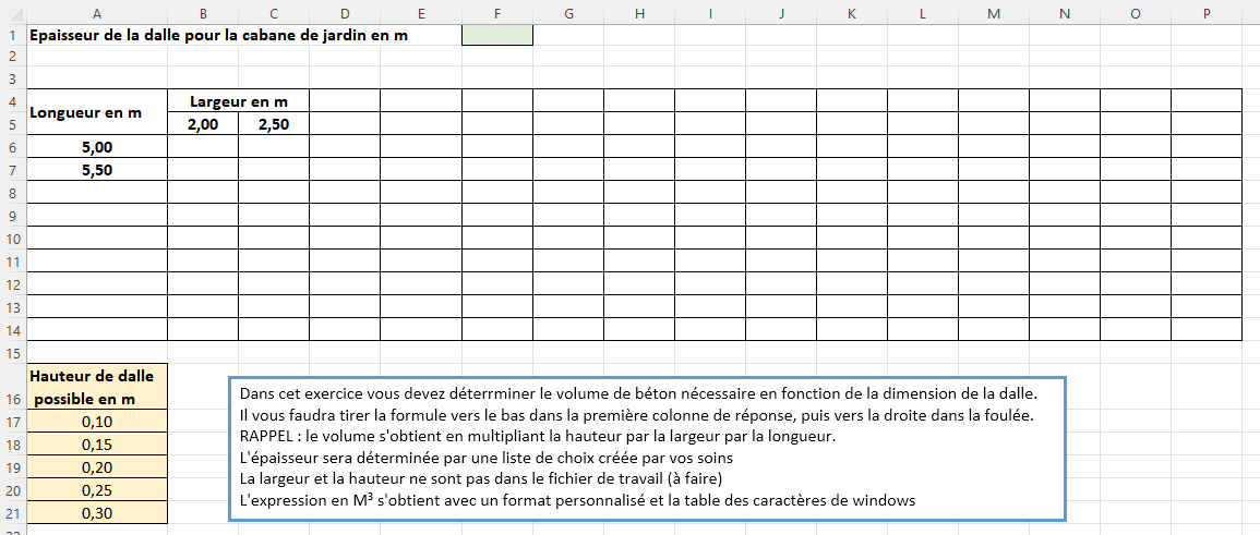 Dans cet exercice, vous devez déterminer le volume de béton nécessaire en fonction de la dimension de la dalle.